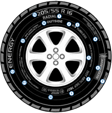 14. Indicates exterior sidewall on asymmetric tyres (For fitting purposes.)